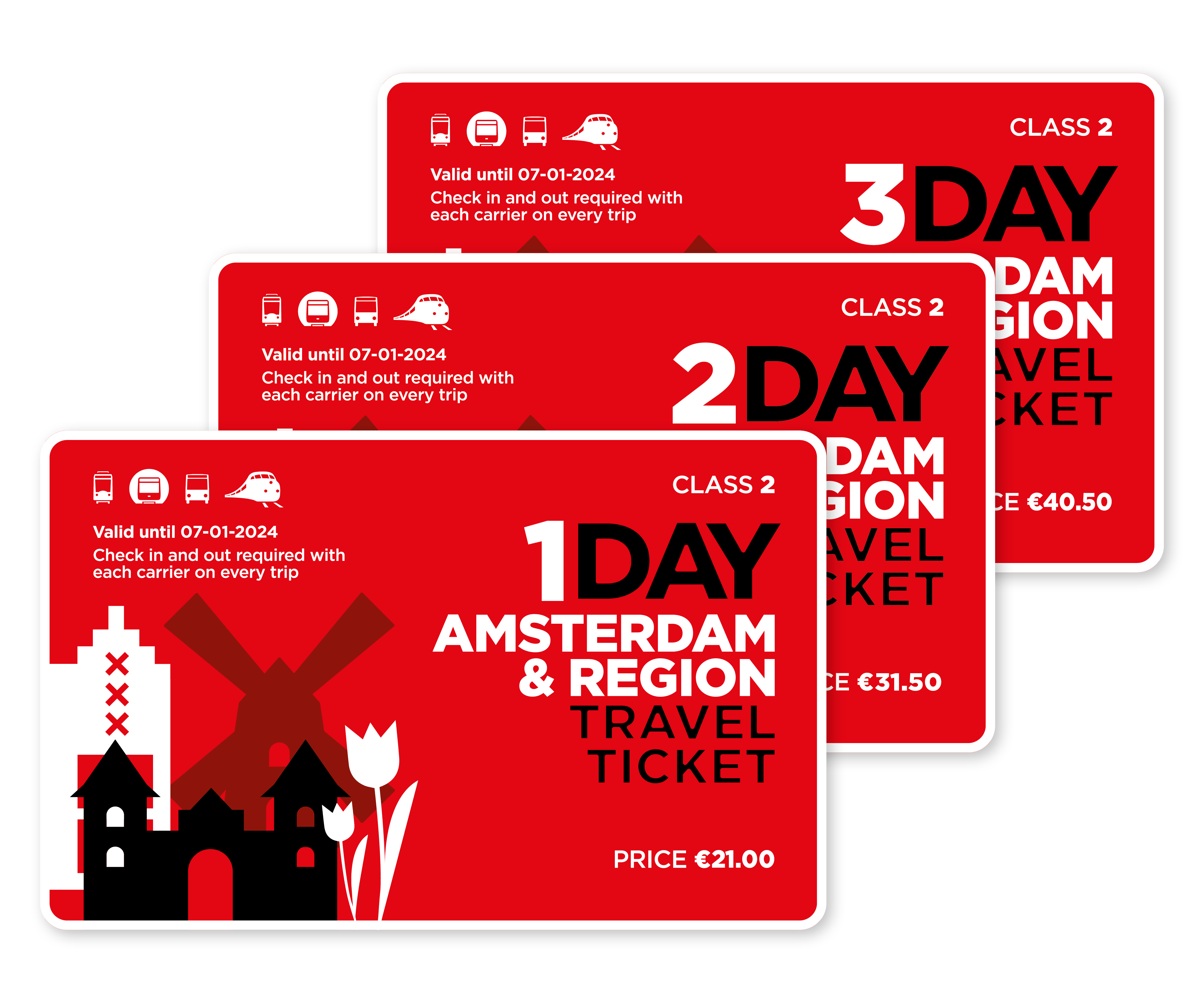 This complete ticket gives you unlimited travel in Amsterdam and throughout the region and is cheaper than separate tickets.