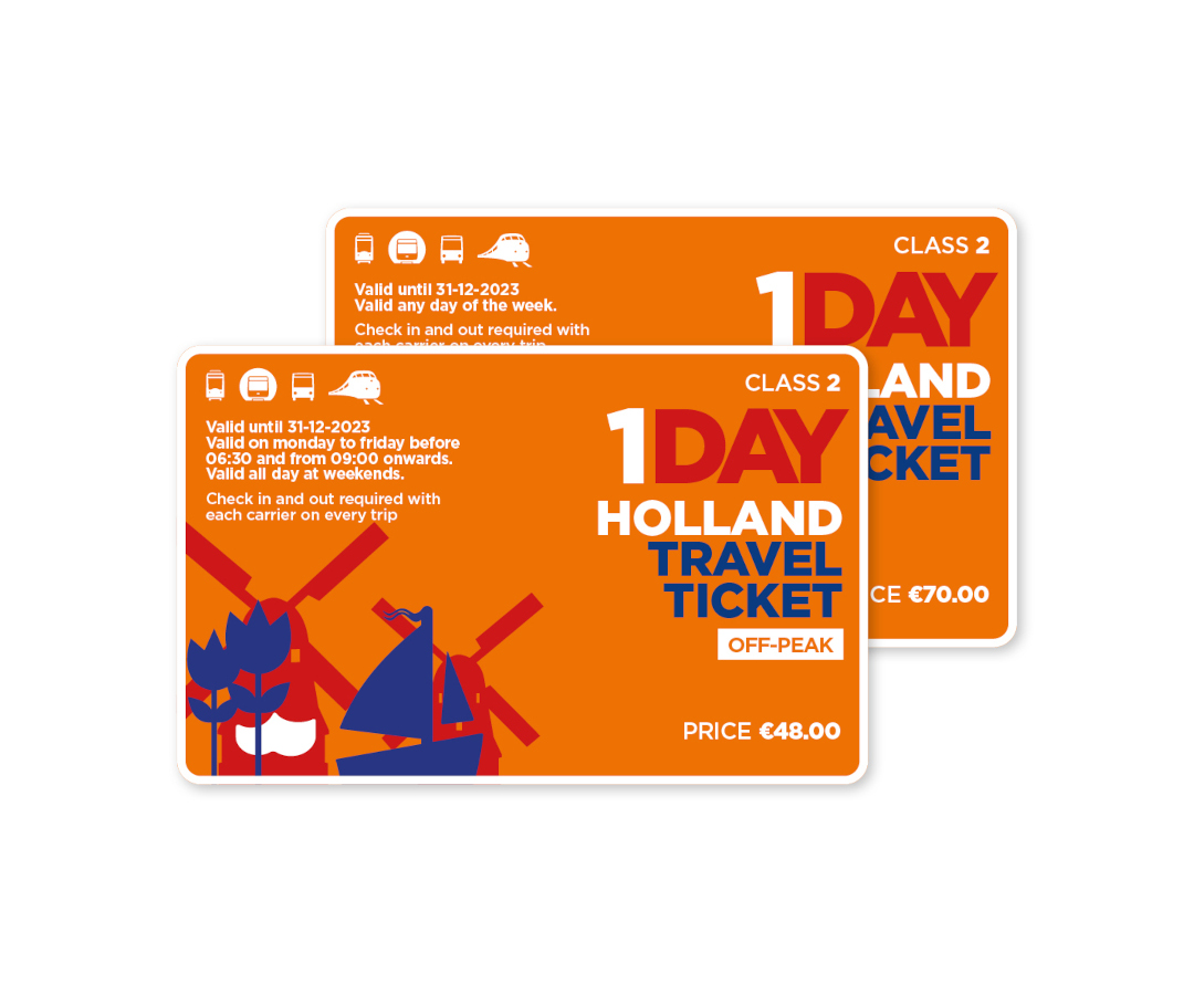 With the Holland Travel Ticket, Discover the best of the Netherlands in a day. Simply choose between peak and off-peak travel.